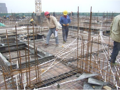 商务楼十层底梁板浇混凝土(2011年2月24日)